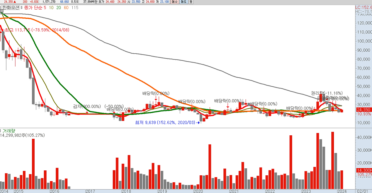 한화오션의 주가 추세 및 기술적 분석 차트