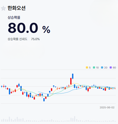 한화오션 주가 분석 차트(80%의 가격 상승 확률)
