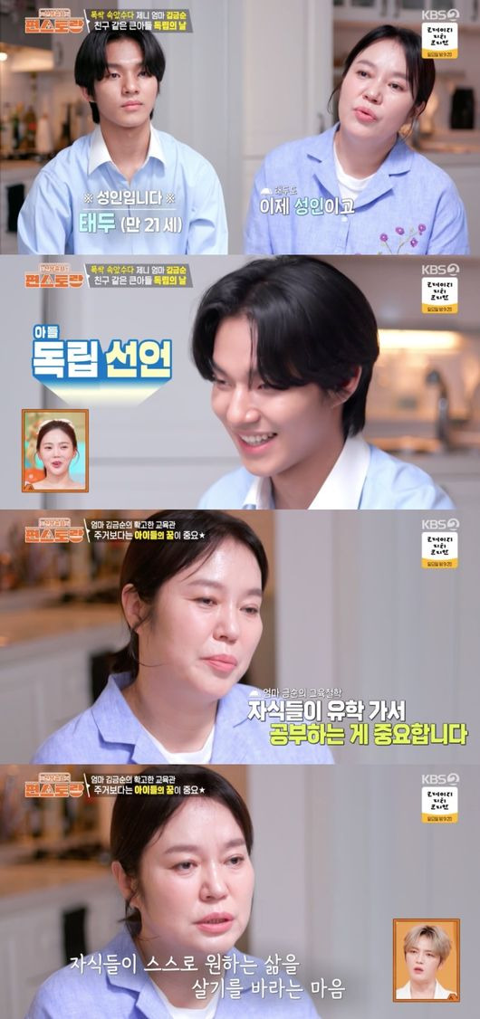 [OSEN=박하영 기자] ‘신상출시 편스토랑’ 두 아들을 키우는 배우 김금순이 남다른 교육관을 밝혔다. 1일 방송된 KBS 2TV 예능 ‘신상출시 편스토랑’(이하 ‘편스토랑’)에서는 친구처럼 다정하