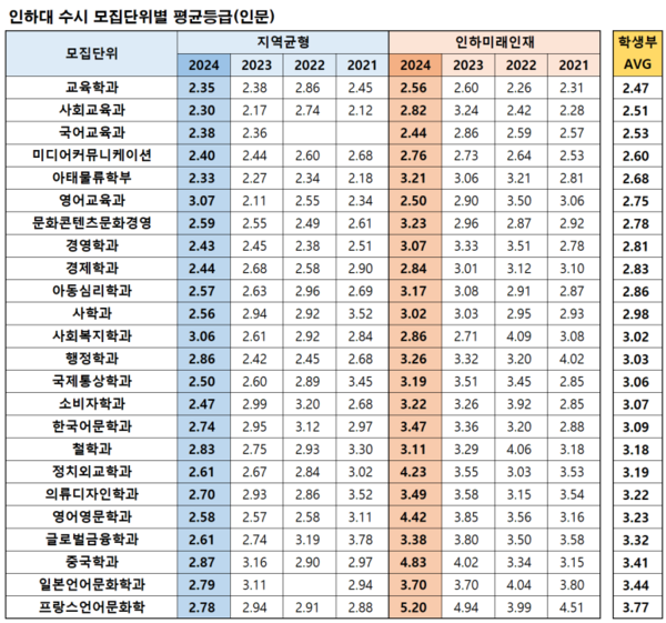 2026 인하대학교 수시 등급 개요