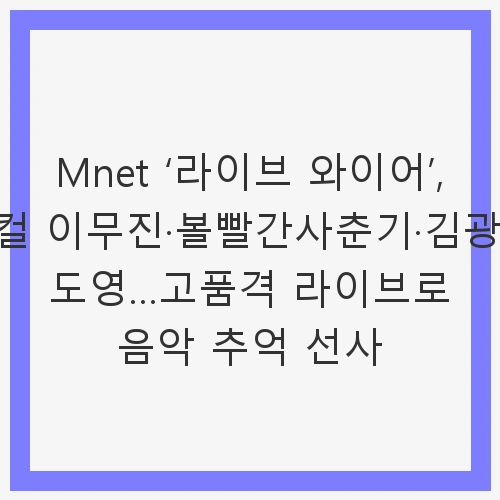 👉Mnet ‘라이브 와이어’, 감성보컬 이무진·볼빨간사춘기·김광진·NCT 도영…고품격 라이브로 음악 추억 선사 바로보기같이 보면 좋은 정보!