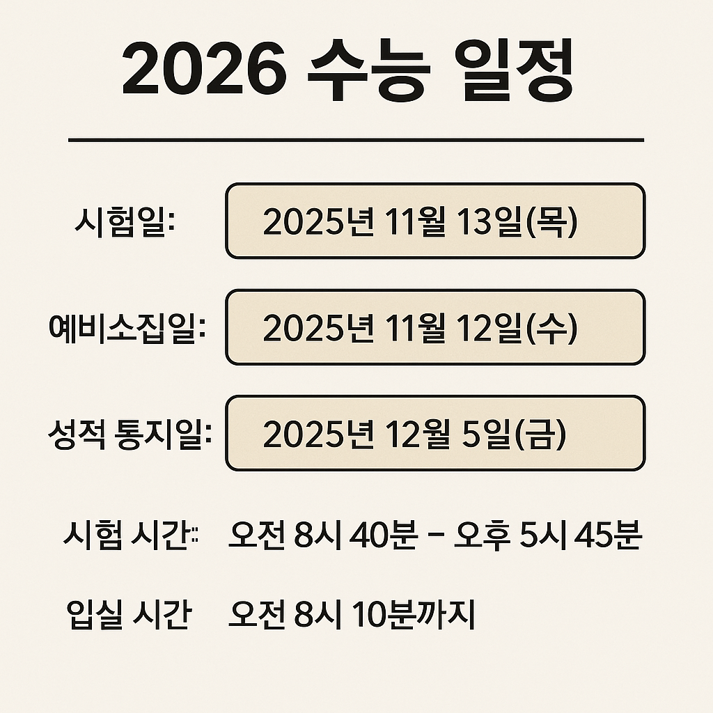 #2026학년도수능 #수능예비소집일 #수능시간표 #수능정답발표 #대학수학능력시험 #수능유의사항 #수능준비물 #입시정보 #수험생팁