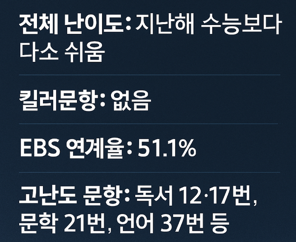 특히 2025 수능은 독서 지문이 평이했고, 변별력은 문법과 추론형 문항에서 나타났습니다.