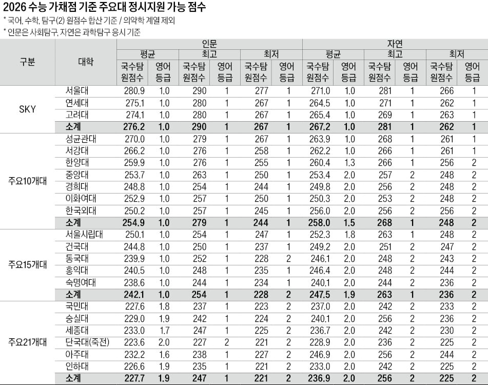 2026년 수능 주요 의대 합격선